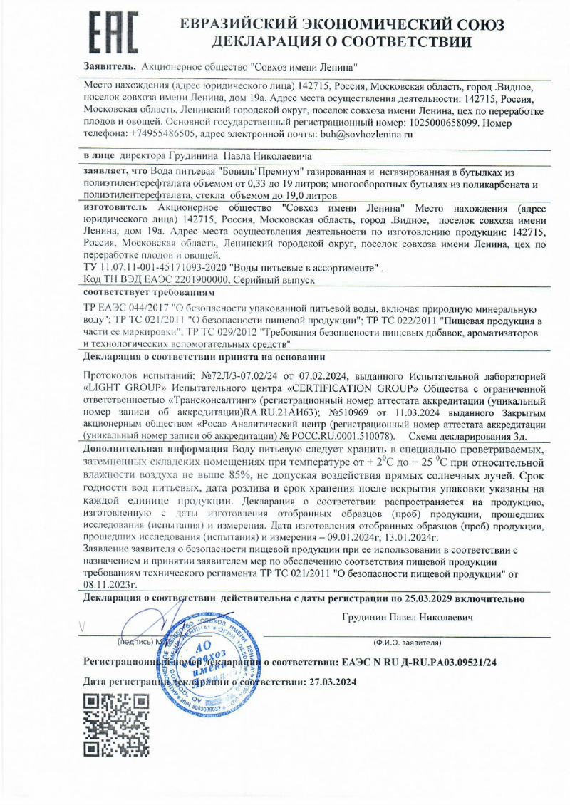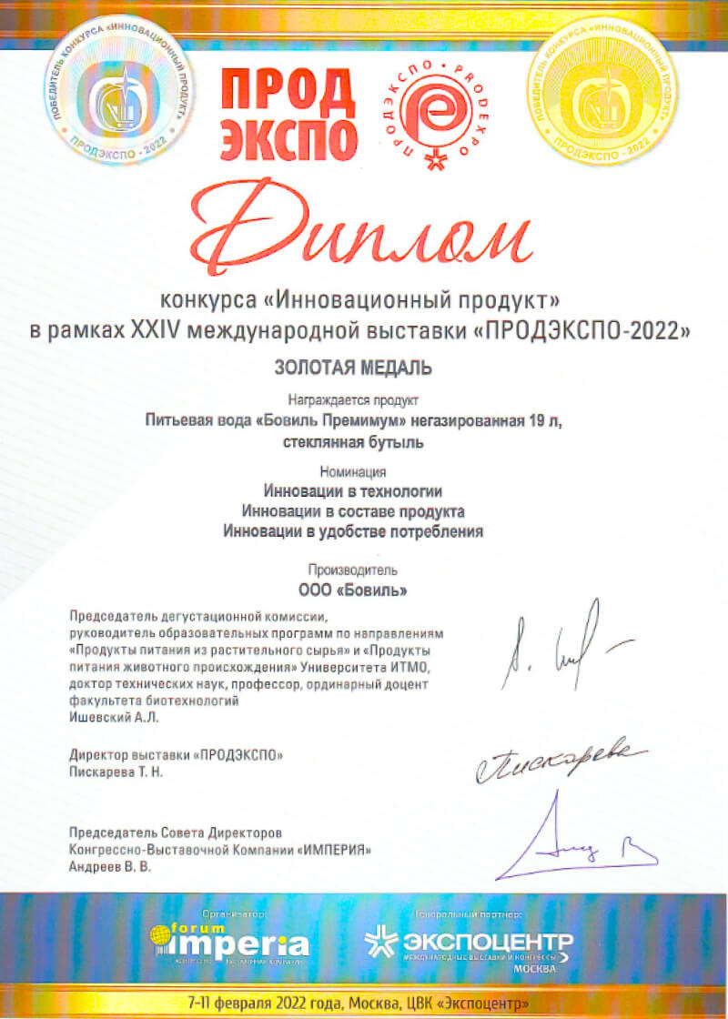 Вода «БОВИЛЬ' ПРЕМИУМ» добывается из скважин №1812 глубиной 118м и №2547 глубиной 120м, проходит 5 ступеней очистки и соответствует международным стандартам качества водоподготовки.