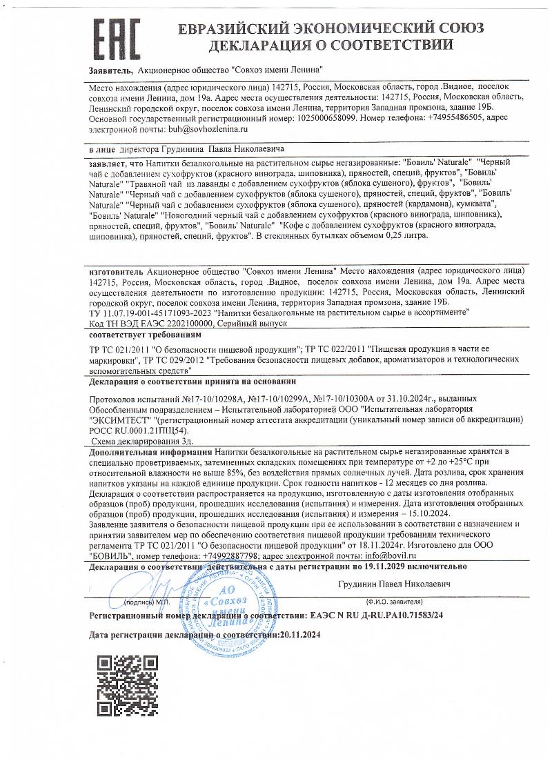 Холодный чай и кофе Бовиль Naturale