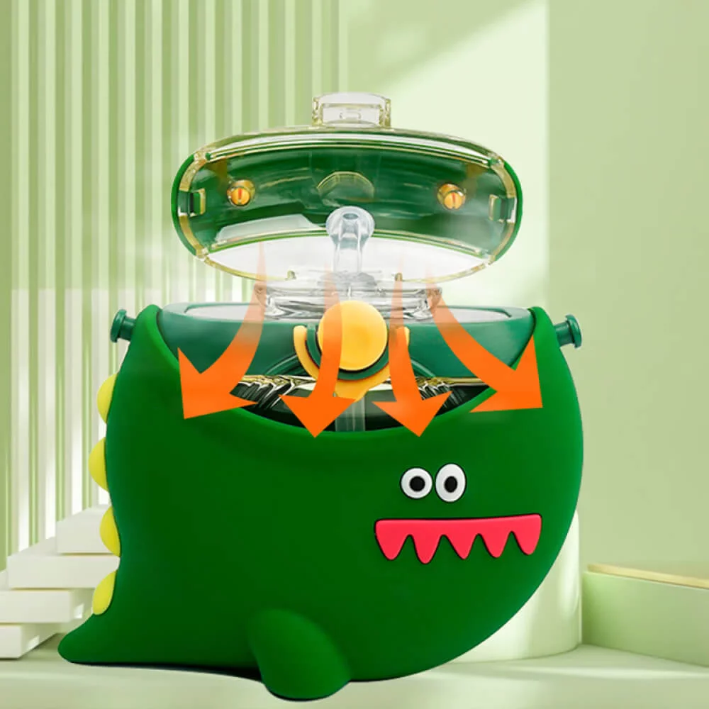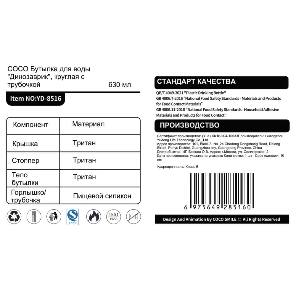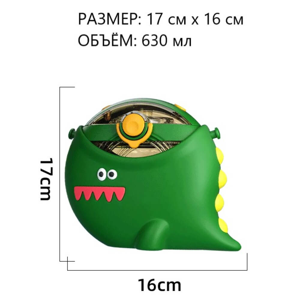 COCO Бутылка для воды «Динозаврик», круглая с трубочкой, 630 мл (зелёный)
